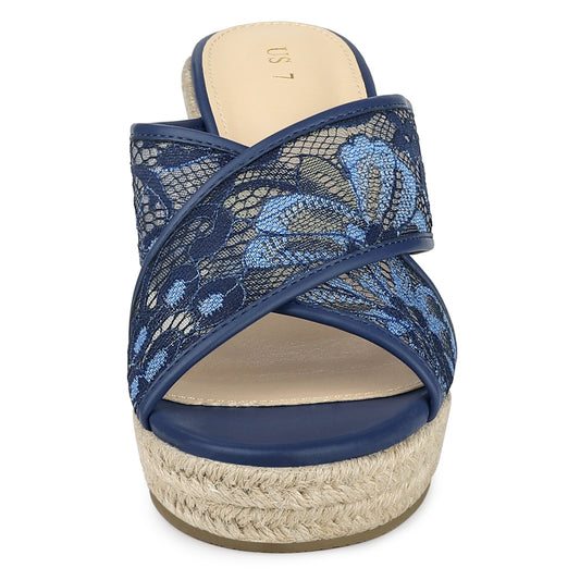Women's Lace Crisscross Strap Slide Wedge Espadrilles Sandals