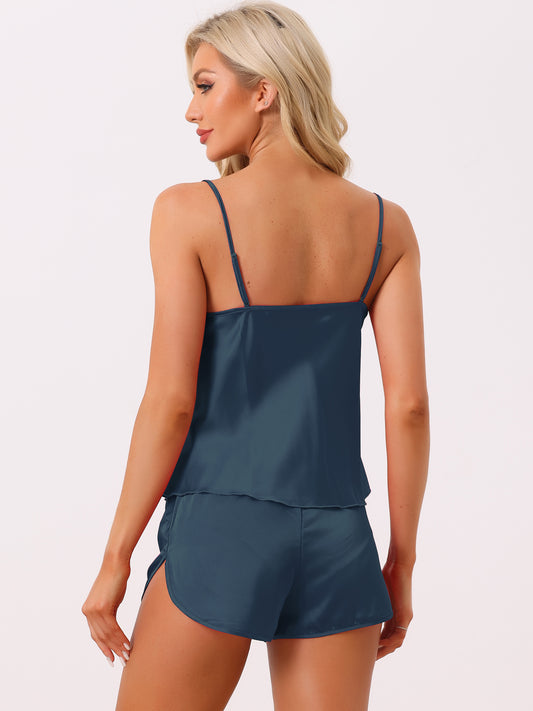 Conjuntos de pijama de satén para mujer, conjuntos de camisola y pantalones cortos, ropa de dormir sexy, conjunto de pijama sedoso con pantalones cortos