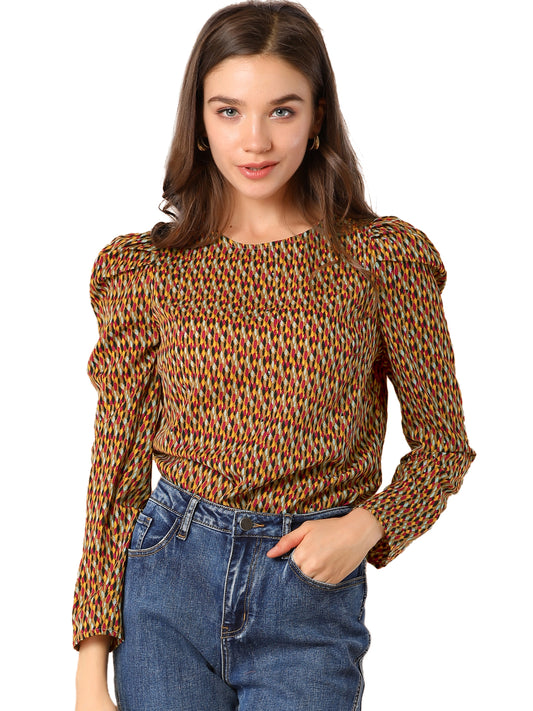 Women's Puff Long Sleeve Round Neck Puffy Chiffon Blouse Top