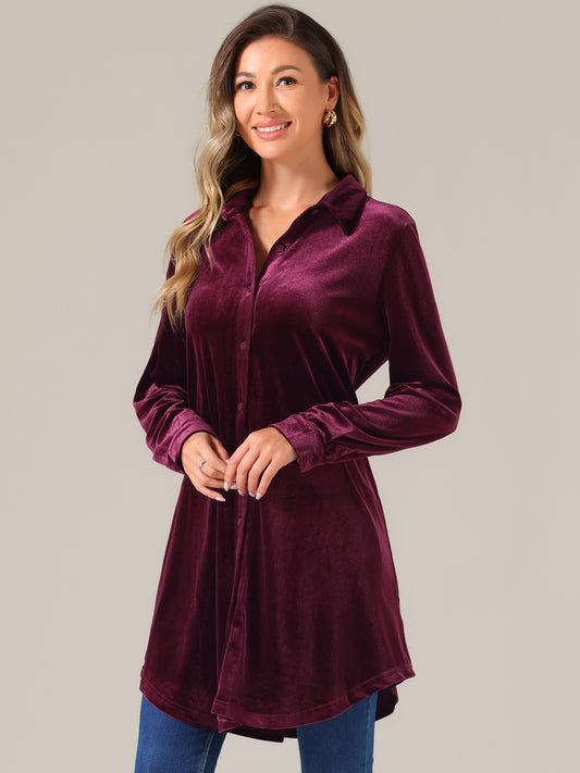 Camisetas de terciopelo con botones para mujer, minivestido camisero informal de manga larga con solapa