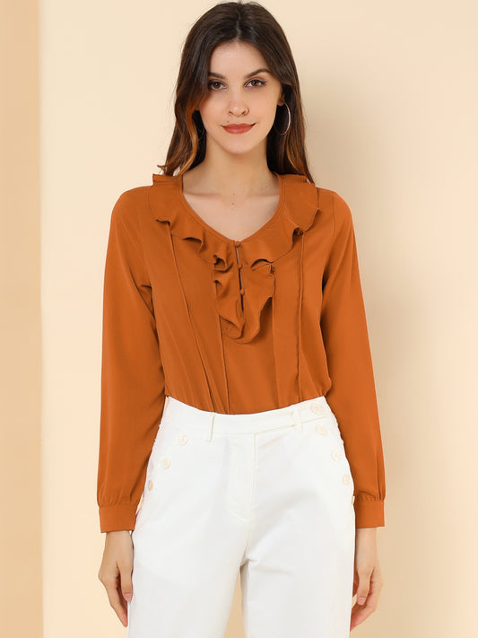 Women's Keyhole Neck Long Sleeve Business Casual Blouse Shirt