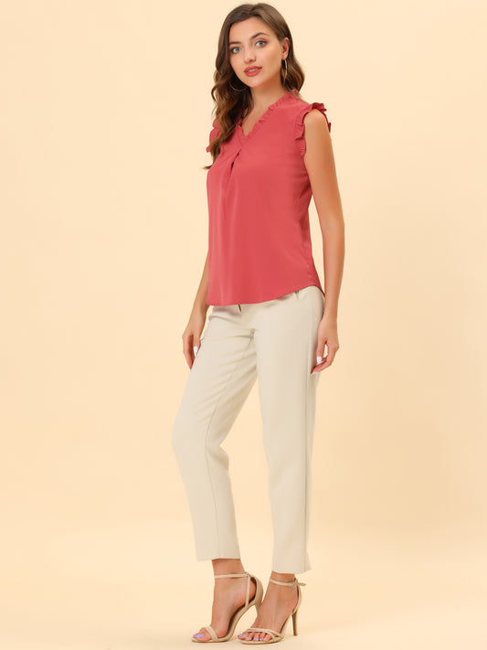 Women's Ruffled Sleeveless Blouse Work Business Top