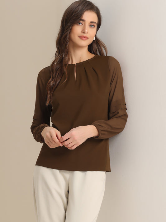 Women's Keyhole Neck Long Sleeve Business Casual Blouse Shirt