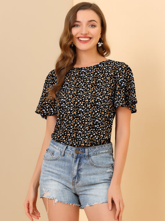 Women's Floral Chiffon Summer Flutter Sleeve Blouse