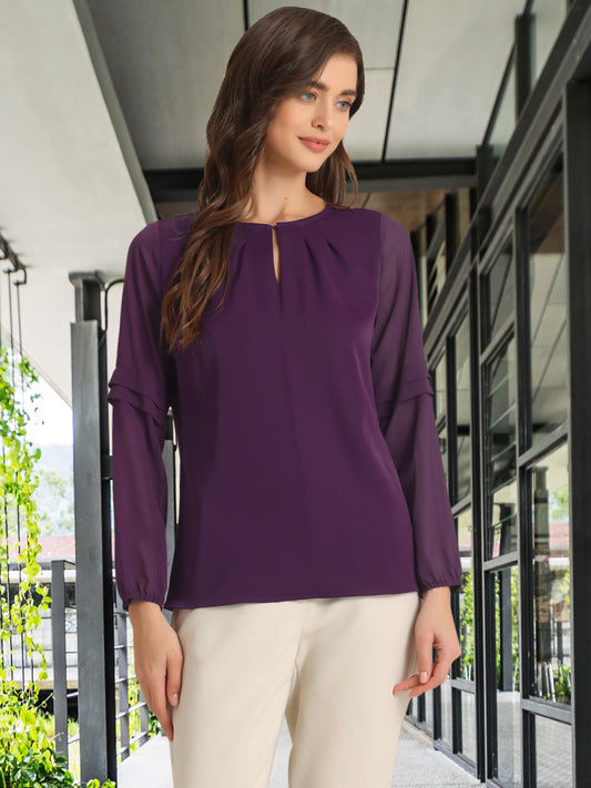 Women's Keyhole Neck Long Sleeve Business Casual Blouse Shirt