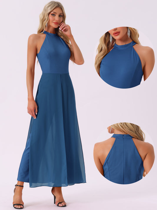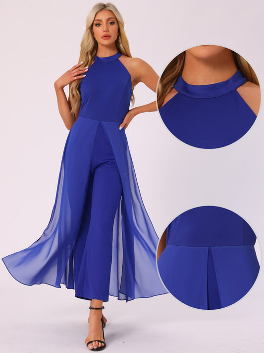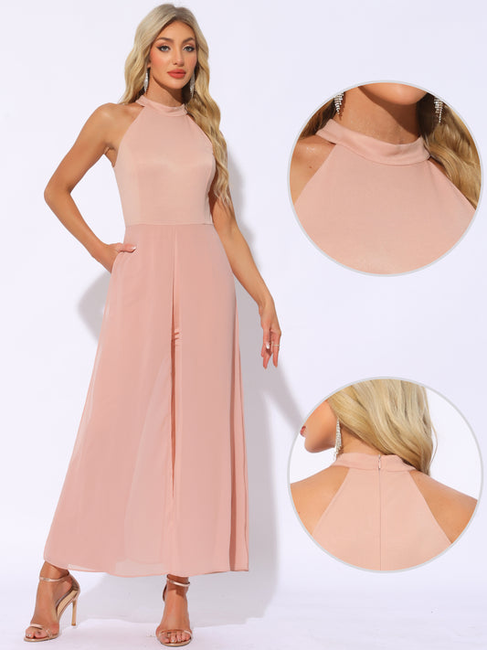 Mono elegante de verano para mujer, sin mangas, con cuello halter, de gasa, para boda, con pierna ancha y elegante