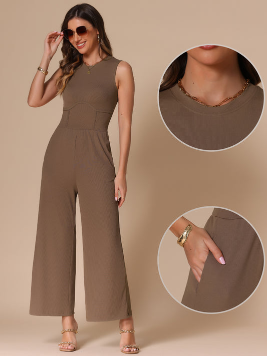 Mono de verano para mujer, elegante, informal, sin mangas, cuello redondo, pantalones de pierna ancha