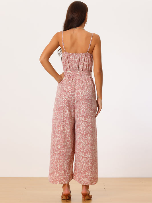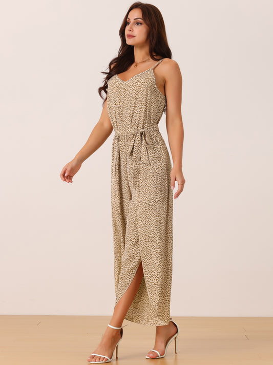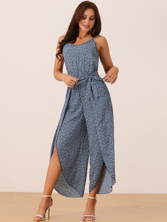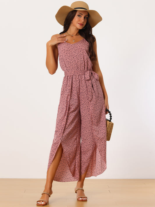 Monos de verano para mujer, con tirantes finos, sin mangas, cuello en V, cintura con lazo, abertura, pierna ancha, informales