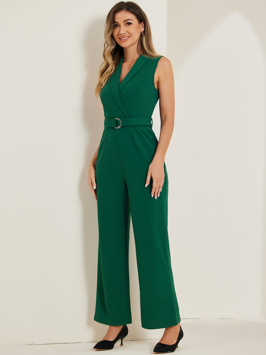 Mono de trabajo para mujer, mono formal de oficina sin mangas con cinturón, mono elegante