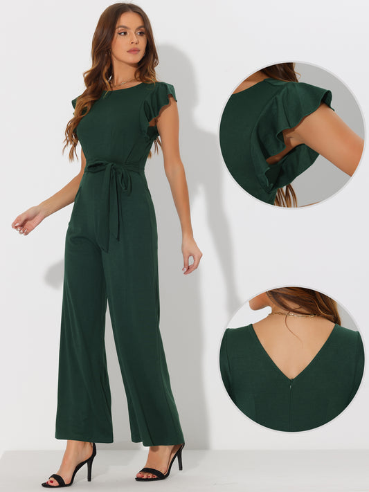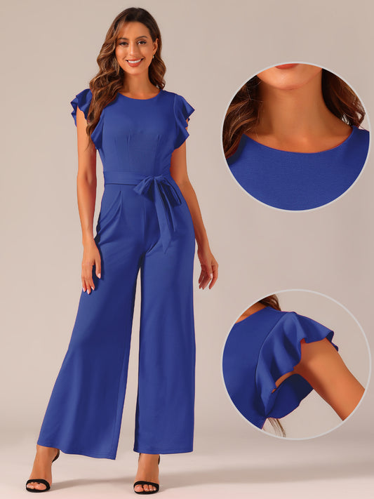 Mono elegante de oficina con cinturón y piernas anchas y cintura alta para mujer