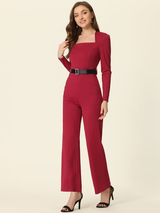 Mono elegante para mujer, cuello cuadrado, manga larga, pierna ancha, pantalones largos, monos elegantes