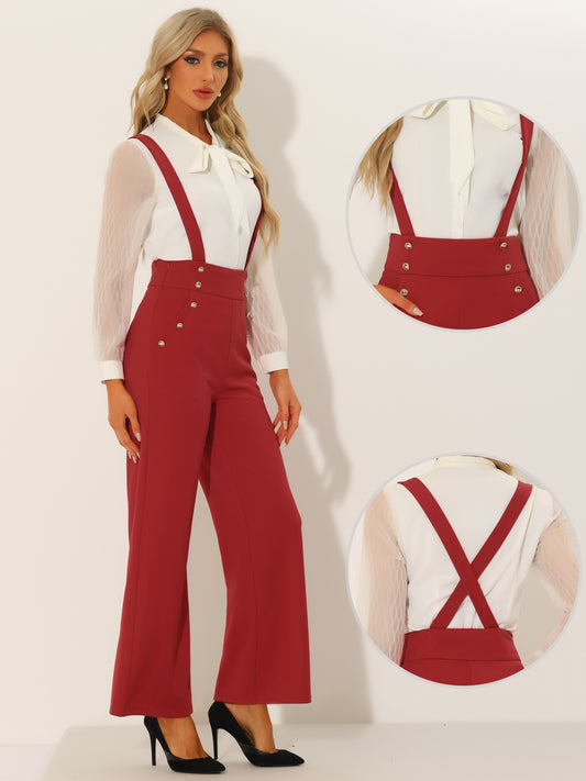 Mono informal de oficina para mujer con tirantes ajustables y pierna ancha