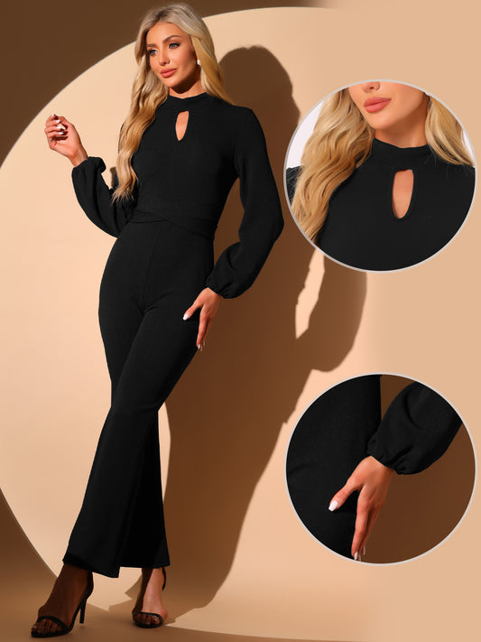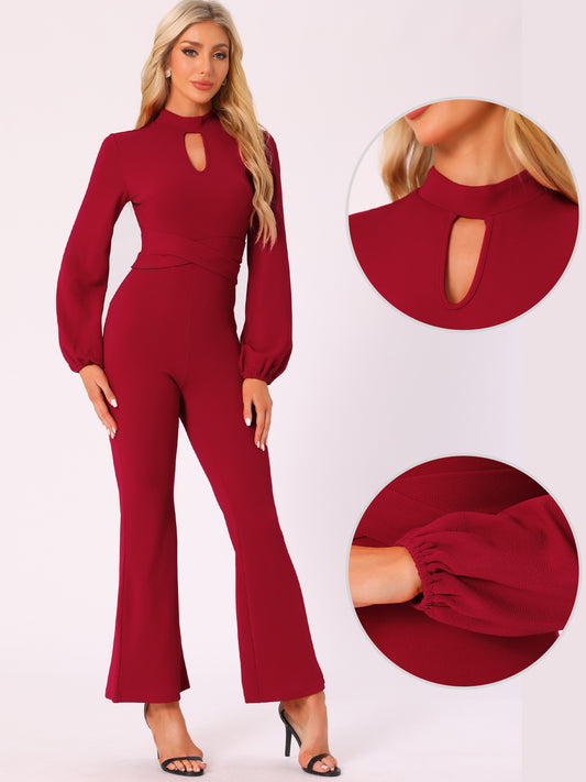 Mono elegante de fiesta con manga larga y cintura alta para mujer, pantalones acampanados, monos elegantes