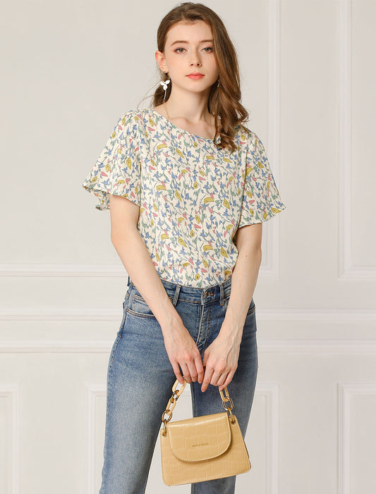 Women's Floral Chiffon Summer Flutter Sleeve Blouse