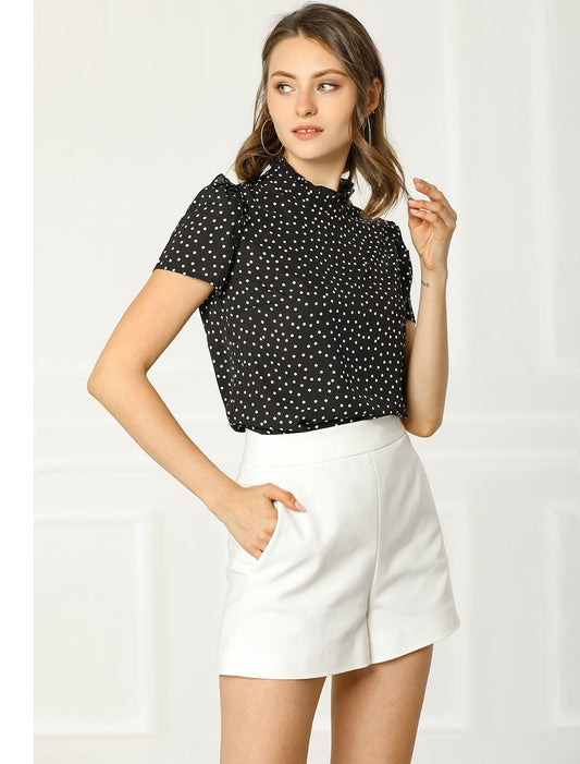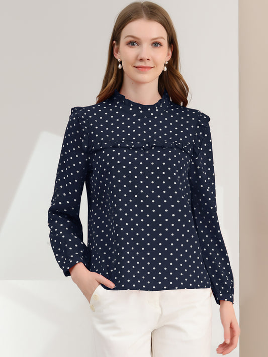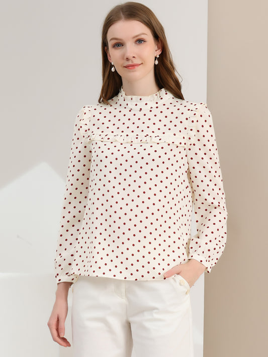 Women's Long Sleeve Mock Neck Ruffle Polka Dots Blouse
