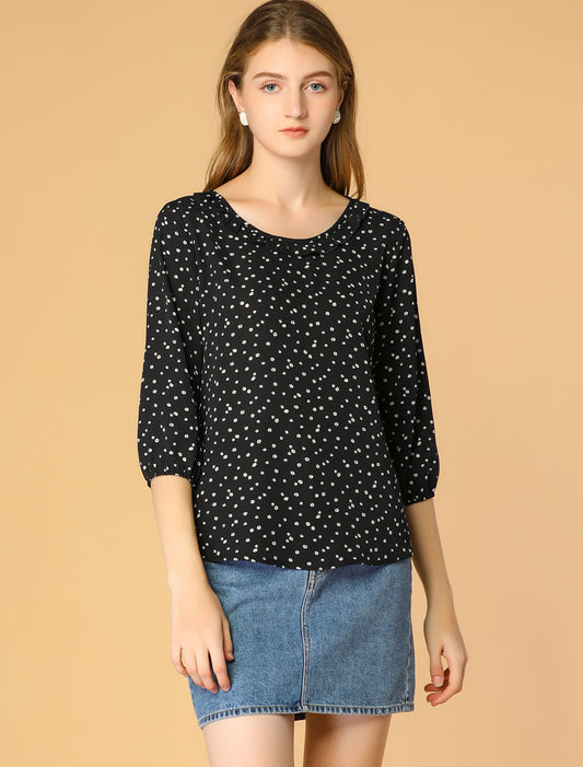 Women's Floral Dots Ruffled Neck 3/4 Sleeves Blouse