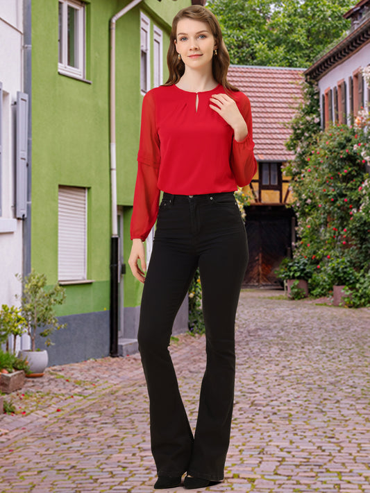 Women's Keyhole Neck Long Sleeve Business Casual Blouse Shirt