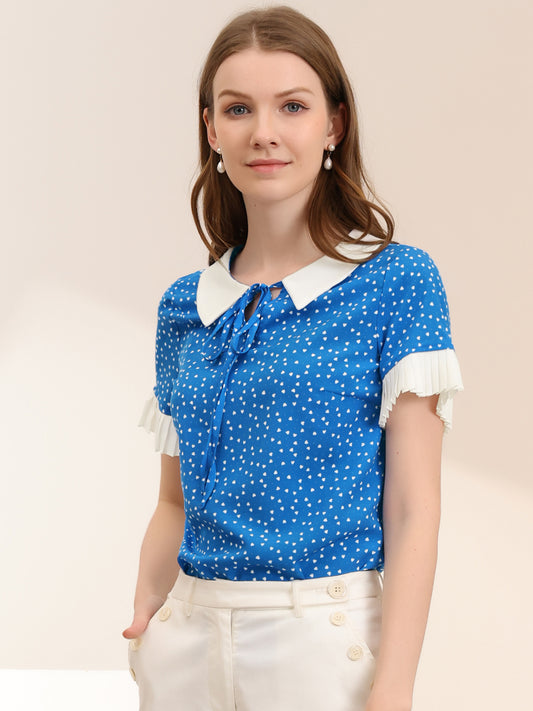 Blusa de manga corta con lunares y cuello de muñeca en contraste para mujer