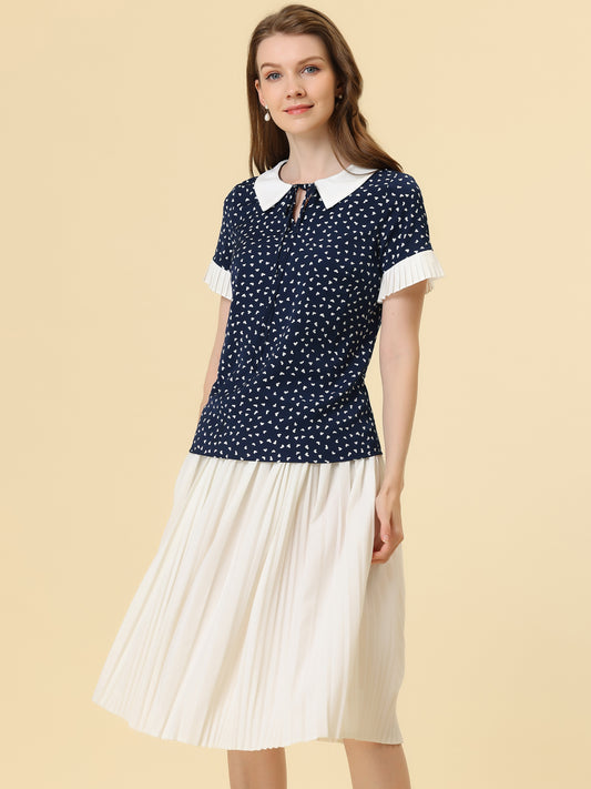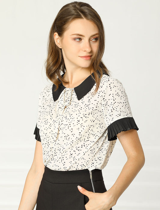 Blusa de manga corta con lunares y cuello de muñeca en contraste para mujer