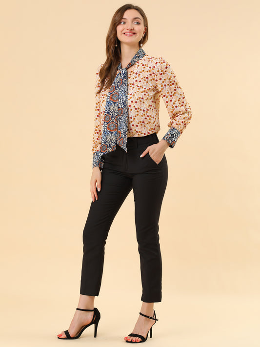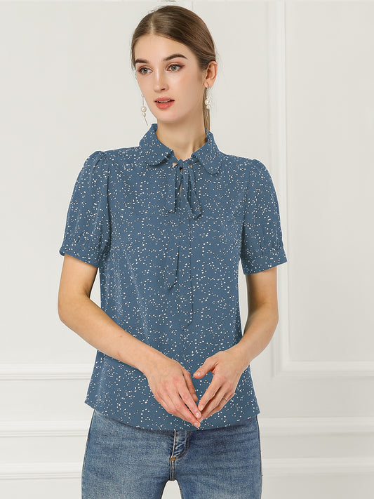 Blusa de gasa con cuello Peter Pan y pajarita estampada retro para mujer