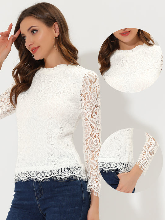 Blusa elegante de manga larga con encaje y peplum para mujer