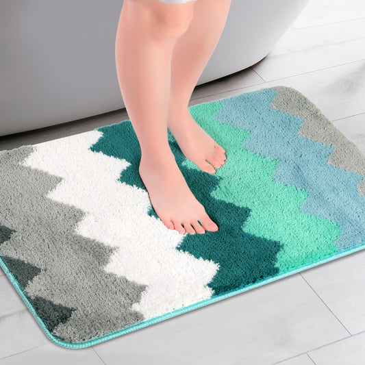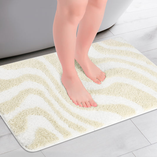 Fashion Wave Pattern Bathroom Rug Mat, Soft Absorbent Machine Wash Bath Mats
