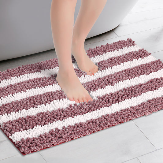 Striped Absorbent Chenille Bath Rugs, Non-Slip Plush Carpet, Machine Washable Bath Mats