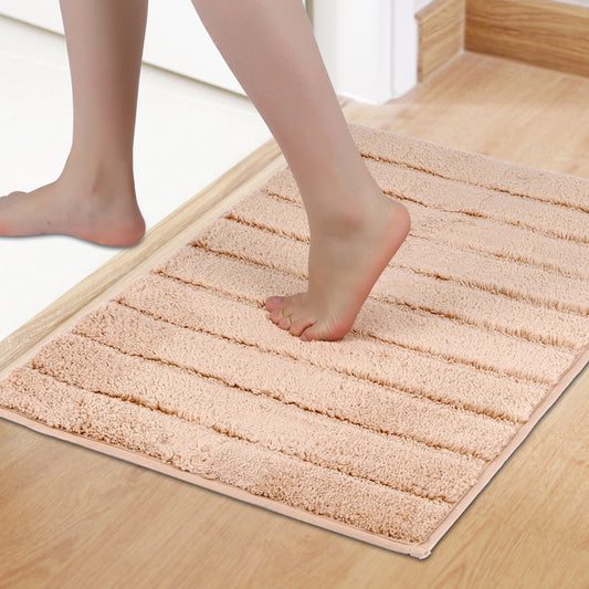 Soft Stripe Bathroom Rug, Rubber Backing Quick Dry Microfiber Rugs Non Slip Bath Mats