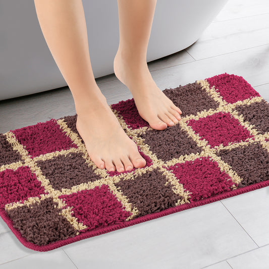Floral Bath Mat, Plush Shaggy Bathroom Rug, Checked Washable Bath Carpet