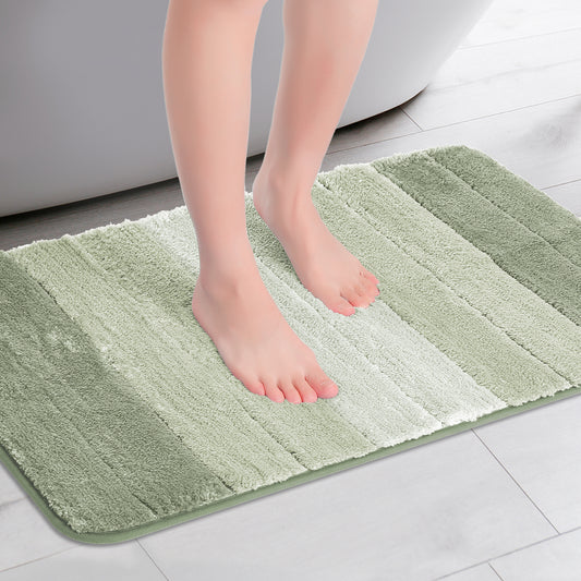 Plush Gradient Striped Bathroom Rug, Microfiber Shaggy Machine Washable Bath Mats