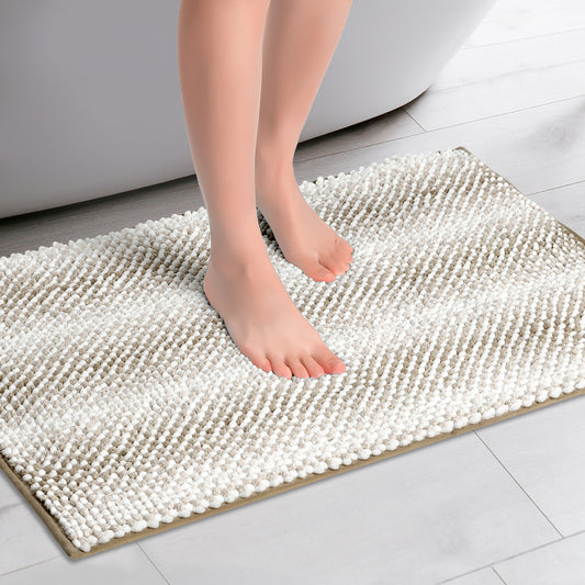 Chenille Bathroom Rug, Soft and Absorbent Non-Slip Striped Rug Luxury Plush Shaggy Bath Mats