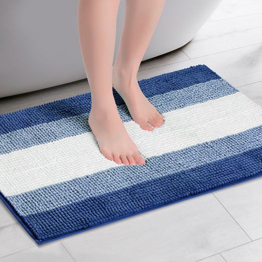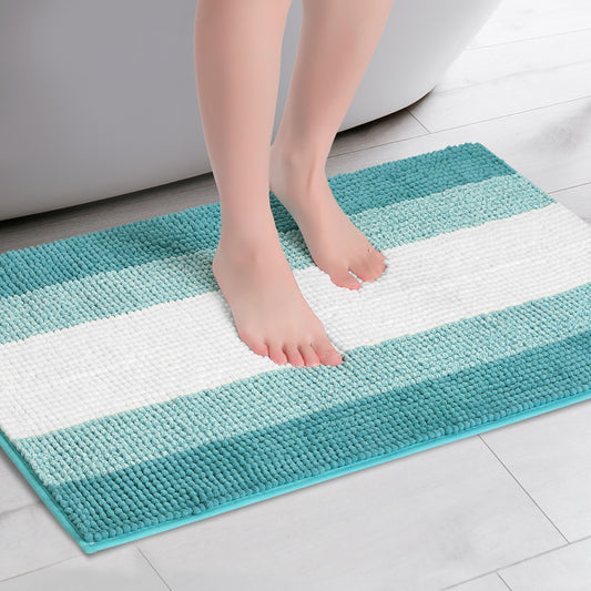 Bathroom Rug, Extra Soft and Absorbent Chenille Bath Rug Fluffy Striped Chenille Bath Mats