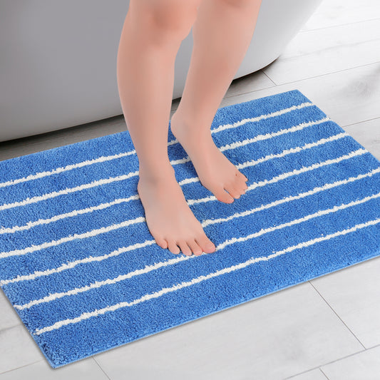 Striped Bathroom Rug, Non-Slip Soft Fluffy Bath Carpet, Water Absorbent Bath Mats