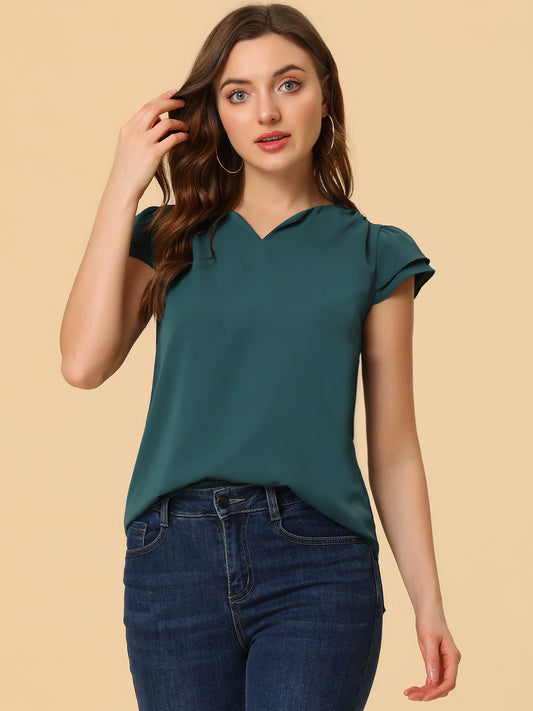 Blusa lisa informal de negocios con mangas cortas para mujer