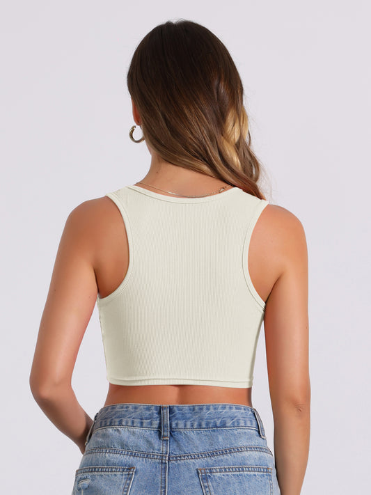 Camiseta básica de tirantes ajustados sin mangas con cuello redondo acanalado para mujer