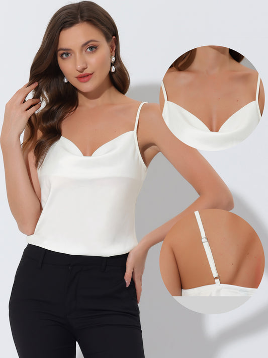 Camisola de tirantes finos de satén para mujer, camisola con cuello vuelto