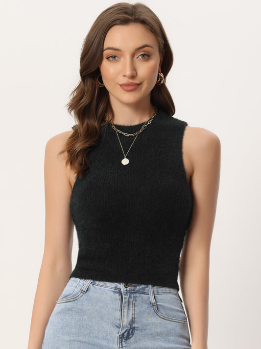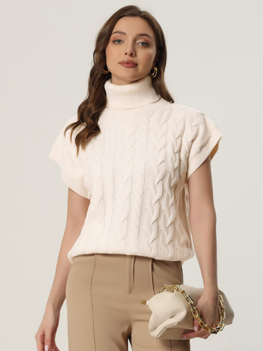 Suéter informal de cuello alto sin mangas con cuello alto para mujer, jersey de punto de color liso