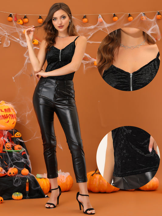 Top de fiesta para mujer, de terciopelo, con cremallera y tirantes finos, sin mangas para Halloween