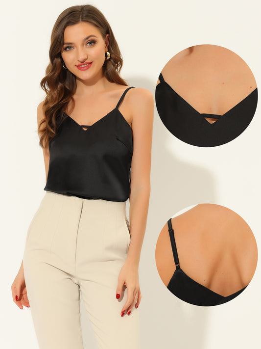 Camisola de satén con cuello en V y tirantes finos sin mangas para mujer