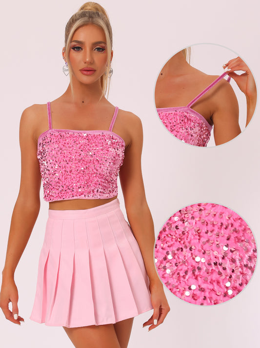 Top corto con purpurina para mujer, corte ajustado sin mangas y brillante para fiesta