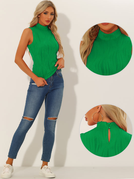 Top ajustado sin mangas para mujer con cuello alto y tejido acanalado texturizado