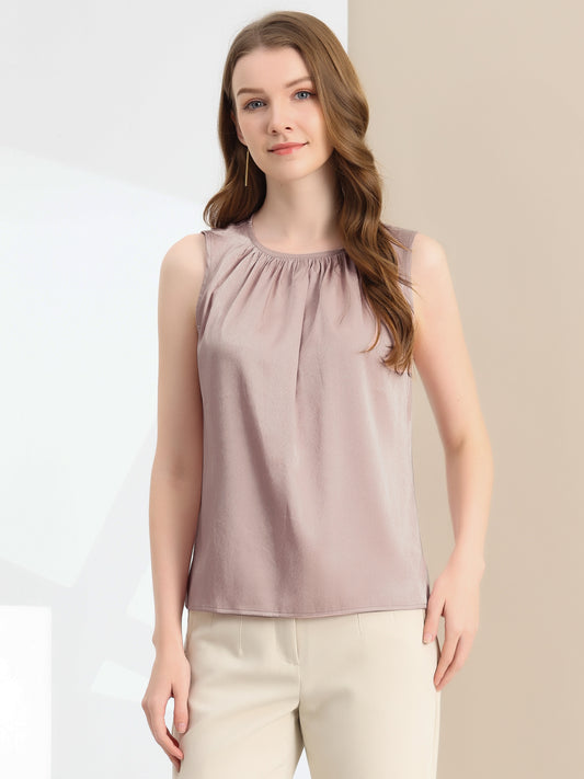Blusa sin mangas de satén plisada para oficina y trabajo para mujer