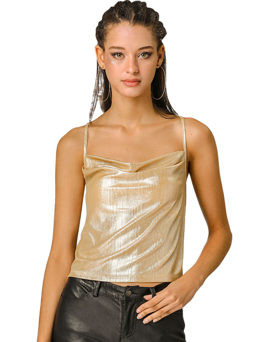 Top sin mangas metálico brillante para mujer para fiesta y club