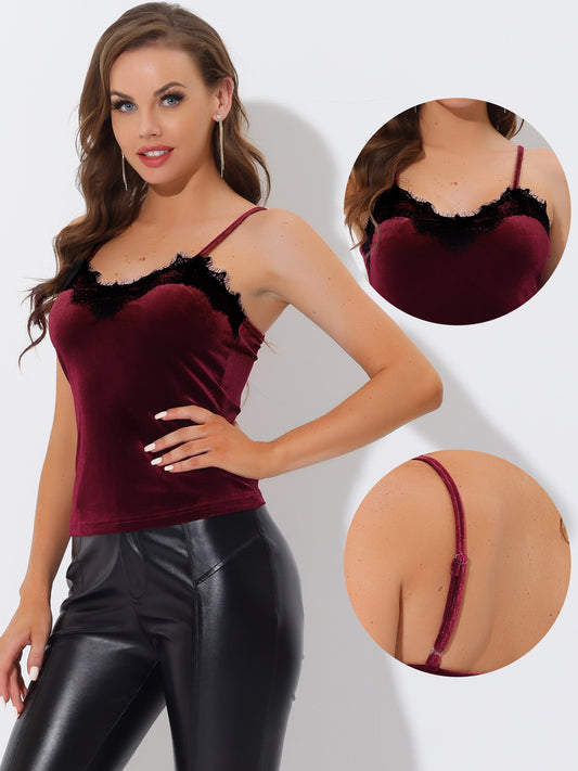 Camisola de terciopelo con encaje y tirantes finos para mujer