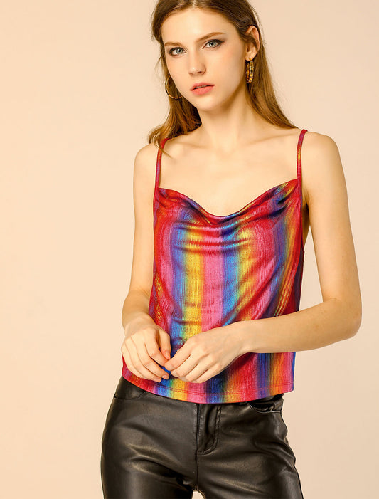 Top de tirantes metálico brillante para mujer para fiesta y club