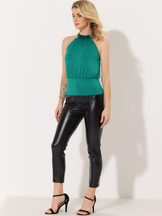 Top sin mangas con cuello halter y lentejuelas para fiesta nocturna de mujer