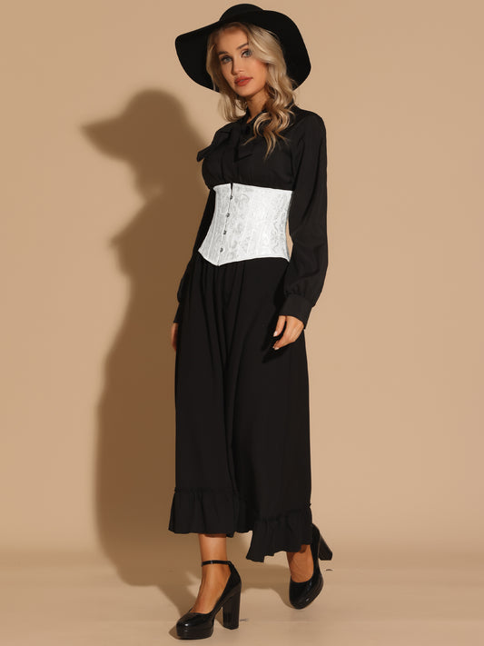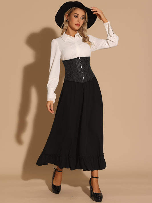 Corsé bajo el busto con cintura ajustada y ballenas de acero con espalda con cordones vintage para mujer
