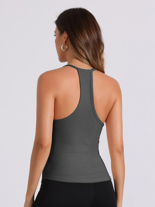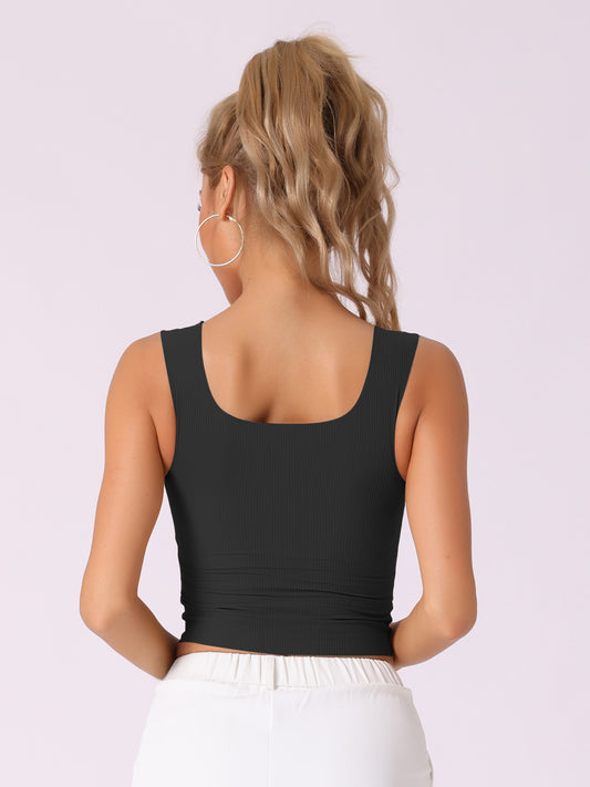 Camiseta interior de tirantes acanalada con sujetador incorporado y cuello cuadrado de corte entallado para mujer