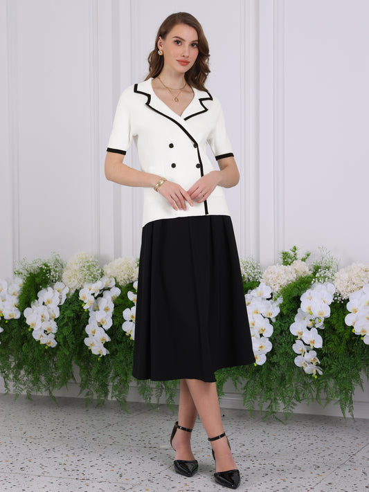 Cárdigan de verano de manga corta para mujer, chaqueta de punto con doble botonadura y contraste de color