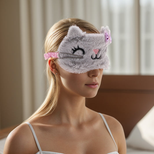 Cute Cat Cartoon Sleep Mask Eye Shade Cover for Rest Gray